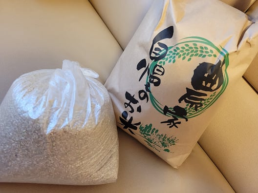 お客様からの頂き物、新米、次郎柿、かもめのたまご