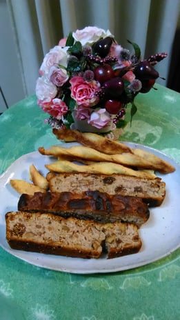 一つは乾燥イチジクやナッツの入った焼き菓子、もう一つのほうは酒粕のねじりパイです!