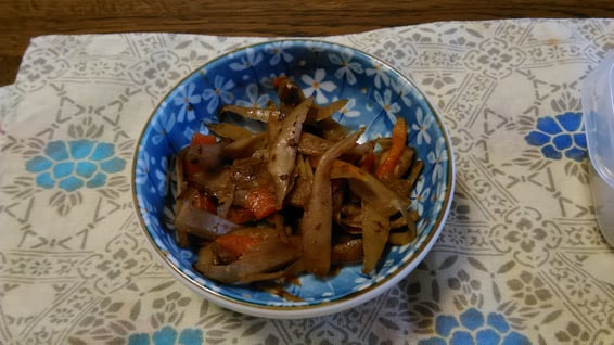 きんぴらはあつめの笹がきに、出しがきいて歯ごたえがとてもよかったです。